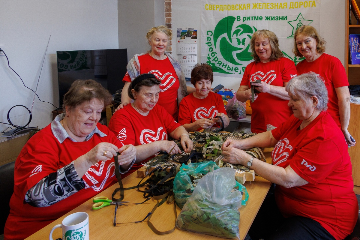 Волонтеры Свердловской ж/д .За плетением маскировочных нашлемников для СВО