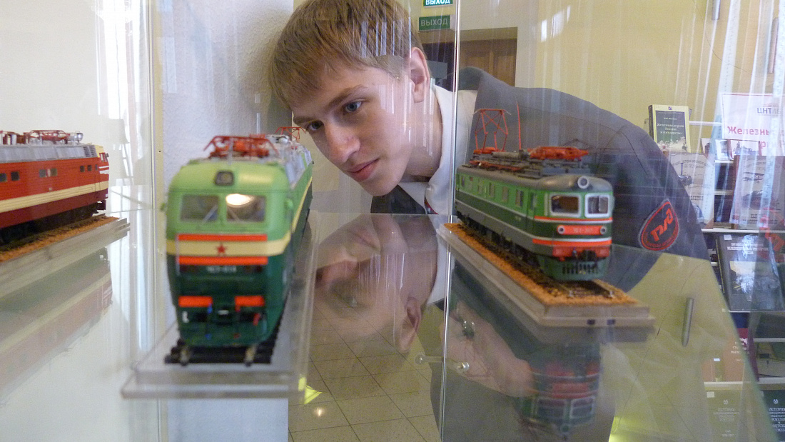 На фотографии, юный железнодорожник Никитин Владислав Михайлович, рассматривает модель электровоза на выставке "История российских железных дорог в моделях", которая проходила в ДК железнодорожников станции Красноярск  в 2011 г.