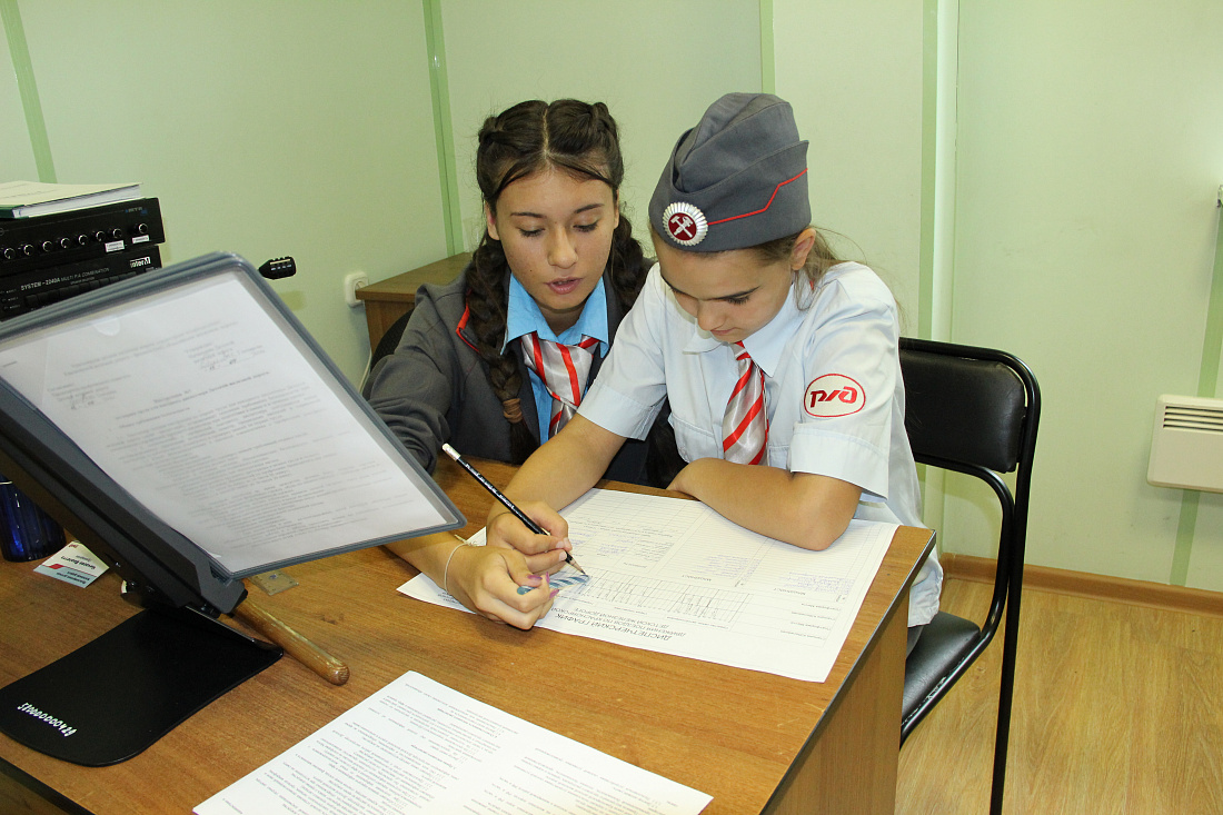 На фото Николаева Ева Владимировна  (стажер поездного диспетчера), Чичаева Виолетта (поездной диспетчер) Красноярской детской железной дороги.  дата сьемки август 2017год. Красноярск ул. Карла Маркса 151/28. Красноярская Детская железная дорога.
