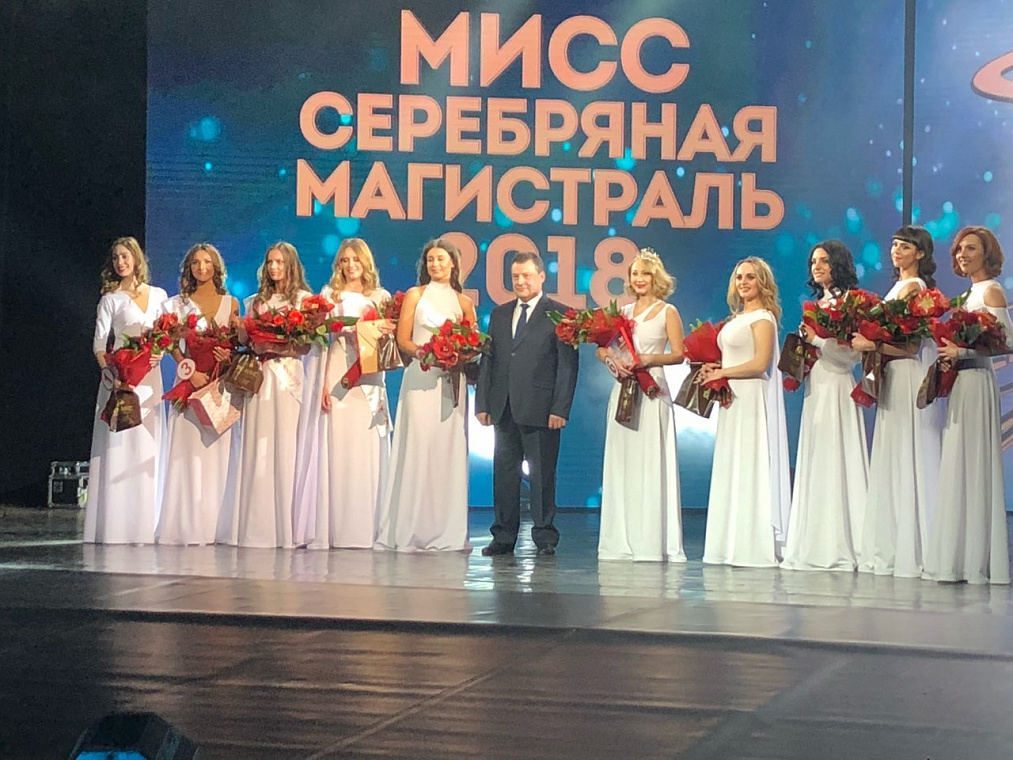 Мисс Серебряная Магистраль среди работниц Красноярской ЖД, фото с Начальником дороги.