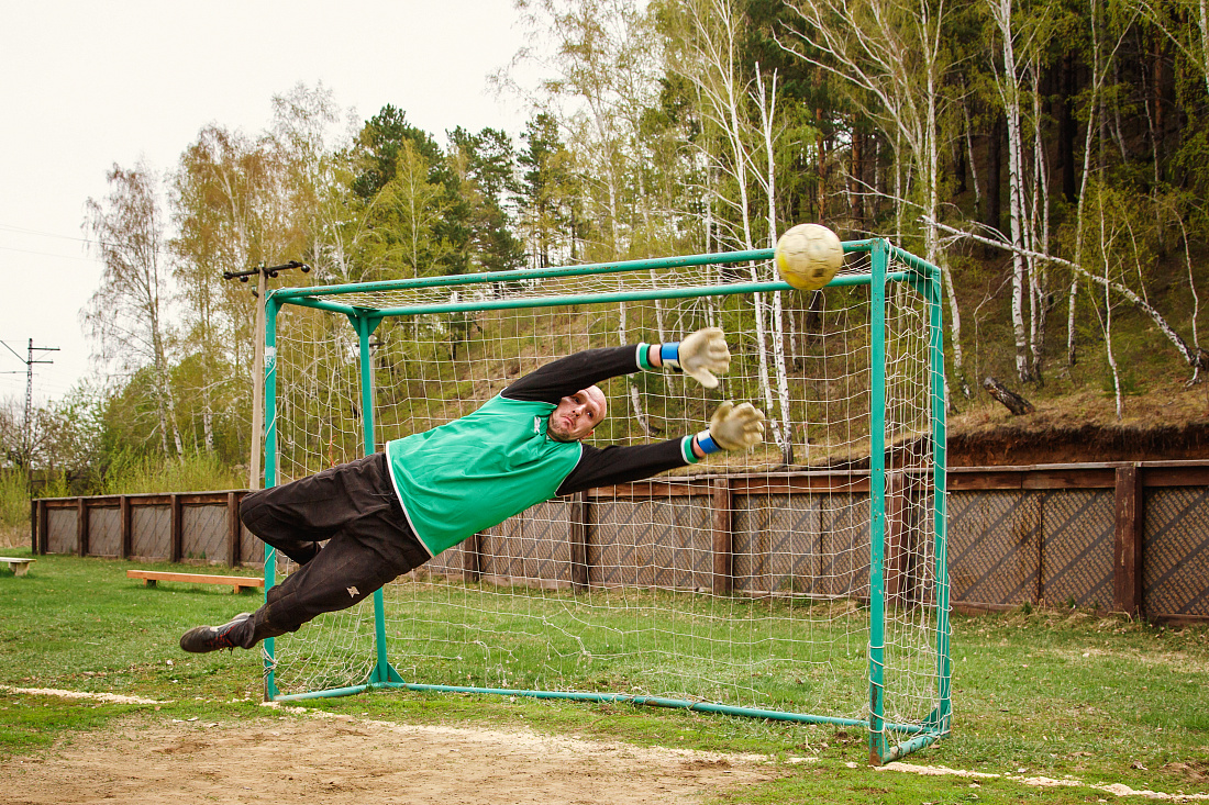 12.05.2018 года на турбазе "Железнодорожник" прошли соревнования по мини футболу среди работников Эксплуатационного  локомотивного депо Иркутск - Сортировочный. Момент ловли мяча во время игры...