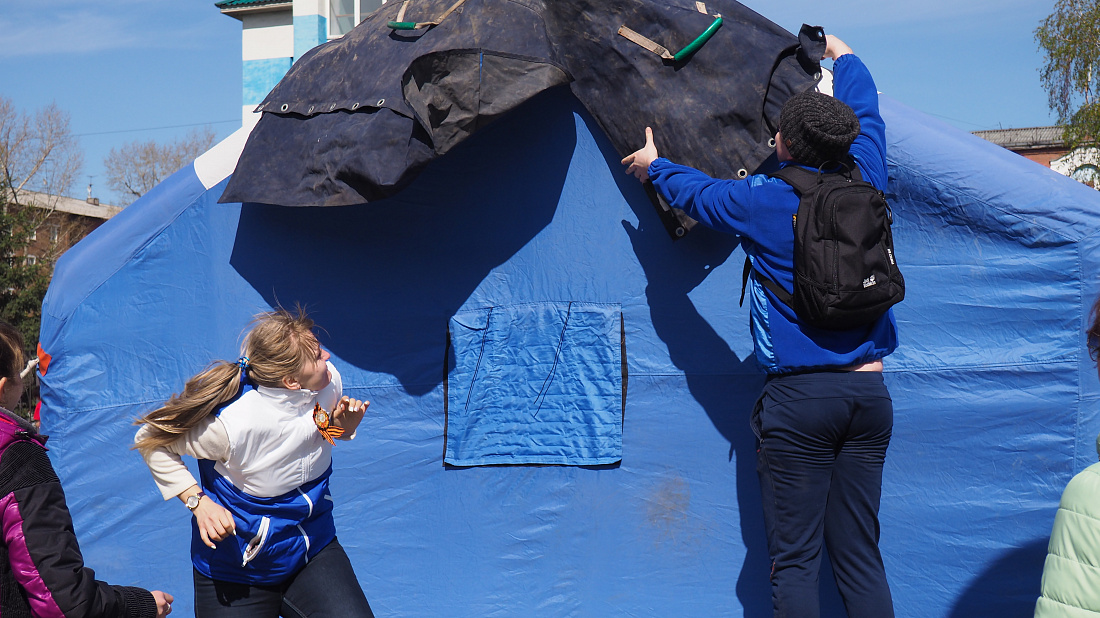 Подготовка полевого кинотеатра к 9 мая
