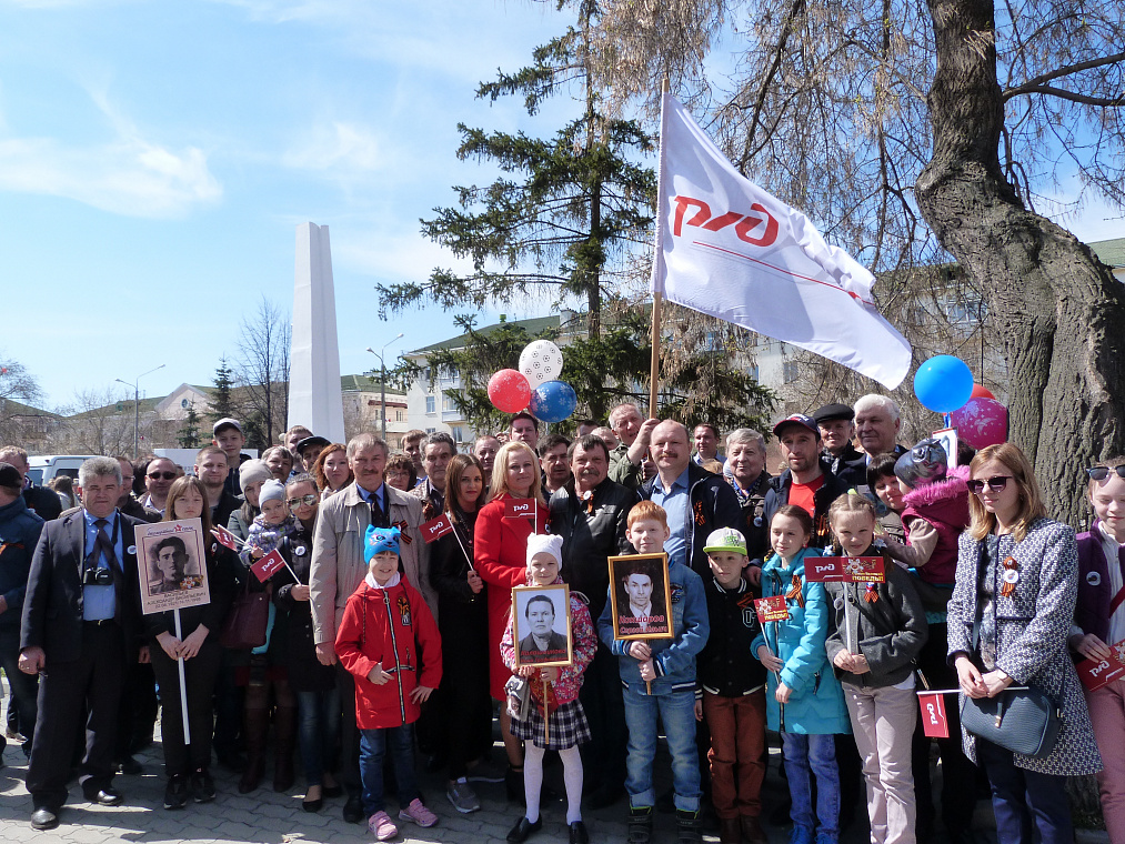 На фото работники Шадринской дистанции пути после митинга в честь 73-й годовщины Победы