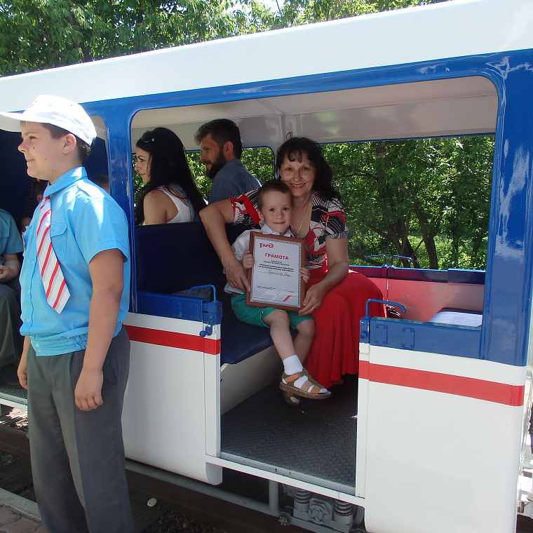 Булатников Роман, 3 года, победил в первом в своей жизни конкурсе рисунков от РЖД, фото сделано в день защиты детей после вручения призов. Получил приз - абонемент на катание на Детской железной дороге на весь сезон!
