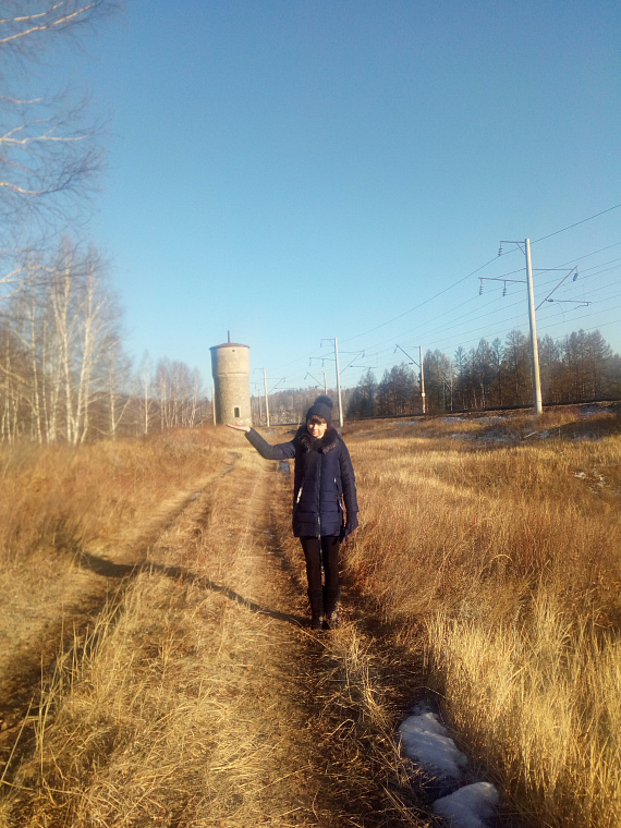 На фото изображен остов бывшей водонапорной башни в уже несуществующем поселке Шалдура Читинской области. На фото - Худякова Татьяна. 2018 год