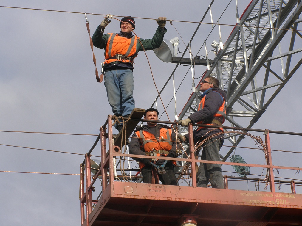 При выполнении работ на высоте железнодорожники думают, прежде всего, о безопасности. Поэтому специалистов страхуют не только надёжные тросы, но и коллеги по цеху.