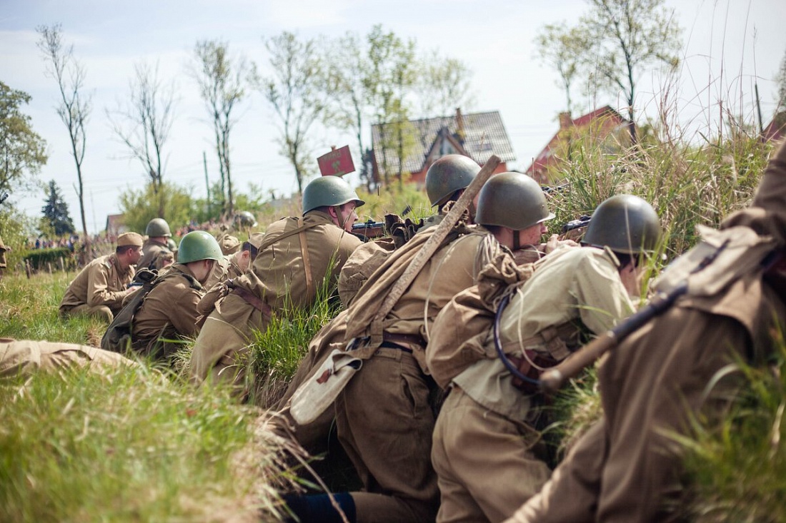 В данной фото работе изображено действие военного патриотизма выраженное в участии военного мероприятия.