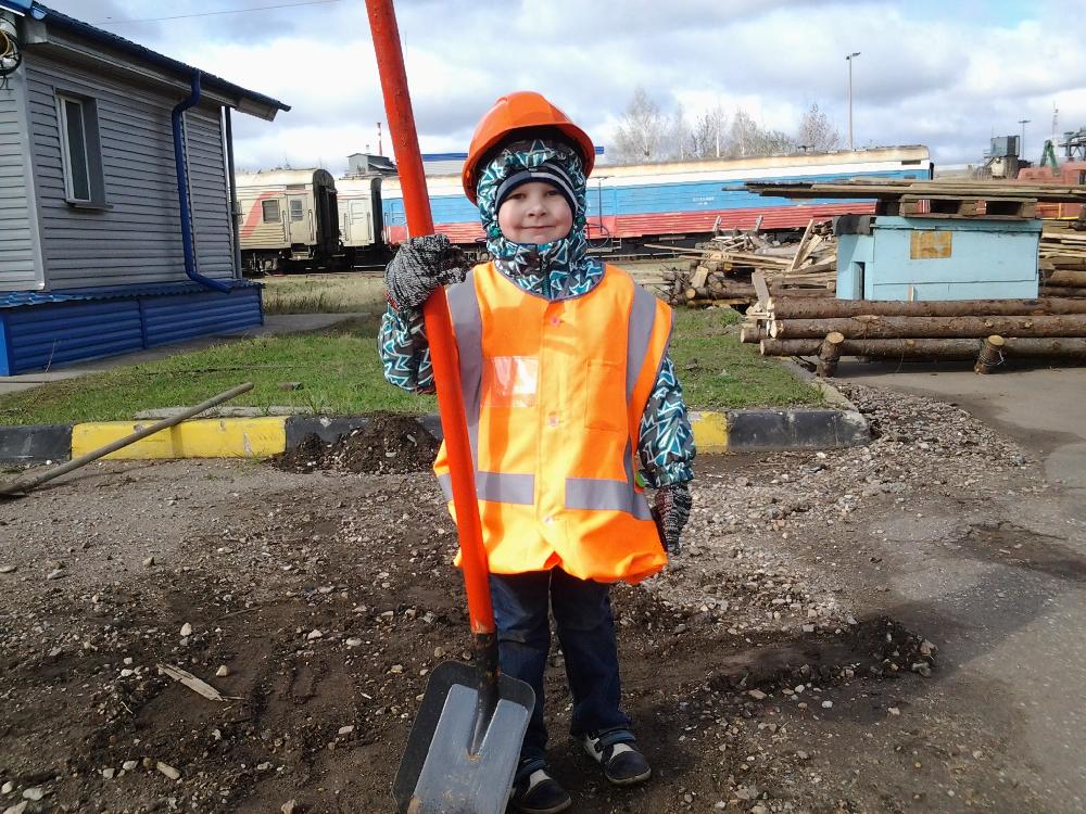 23.04.2016 года. Субботник на Главном материальном складе Московской ДМТО. Заведующий складом Кибальниченко Пётр Михайлович много раз рассказывал своему сыну о работе. Маленький Михаил давно просил папу, взять его к себе. И вот мечта малыша сбылась! Вместе с папой на субботнике – это ли не счастье?