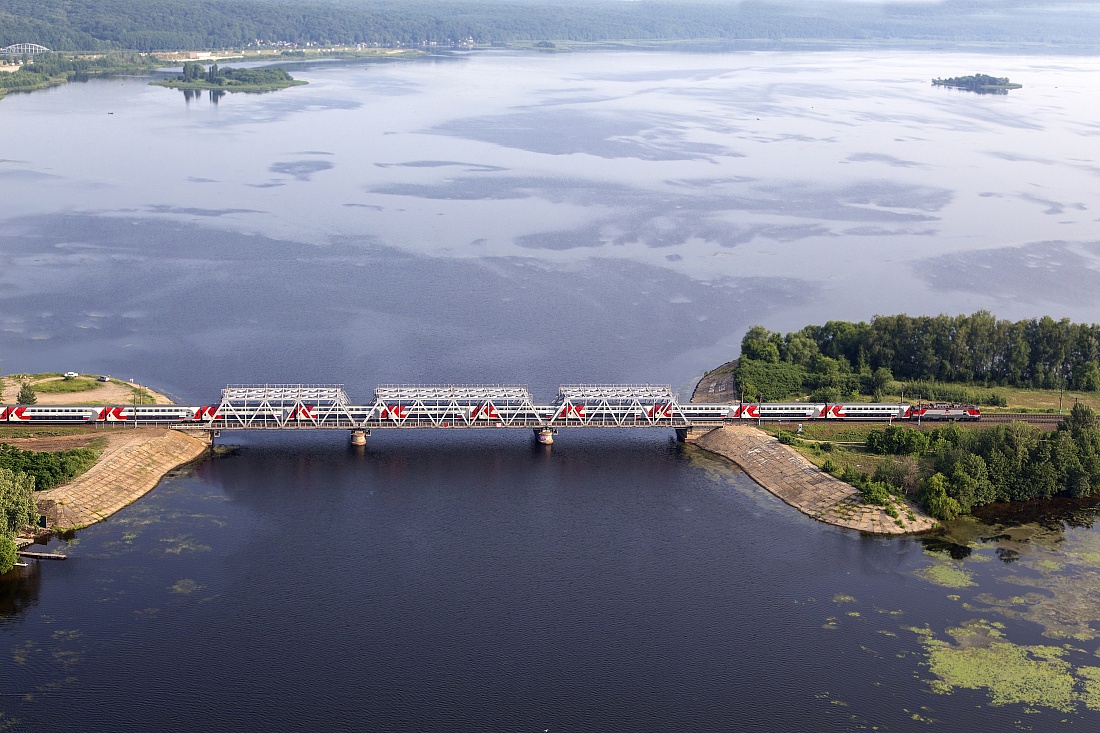 Снято в июне 2016 года с вертолета. Дневной поезд Воронеж-Москва отправился со станции Воронеж-1
