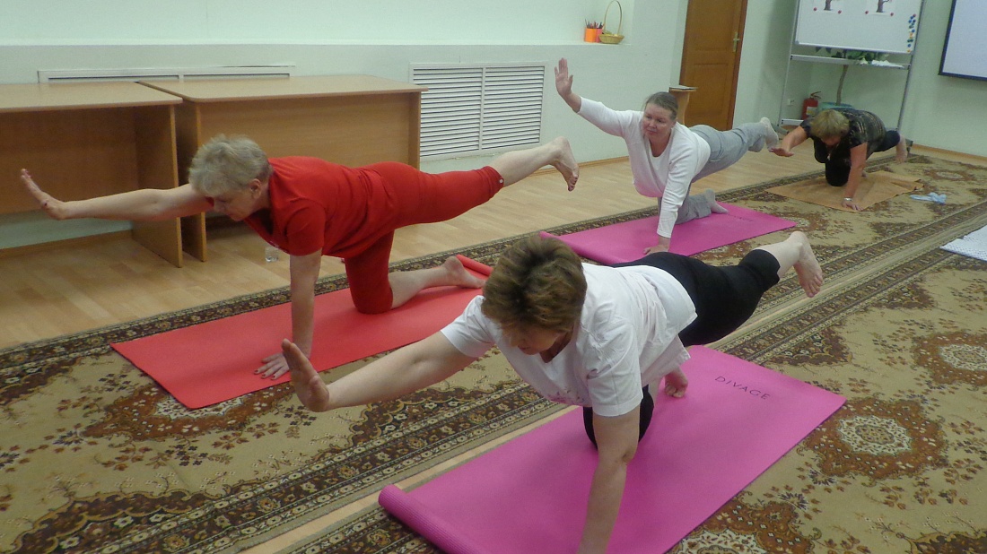 Ветераны  ДИ занимаются йогой.