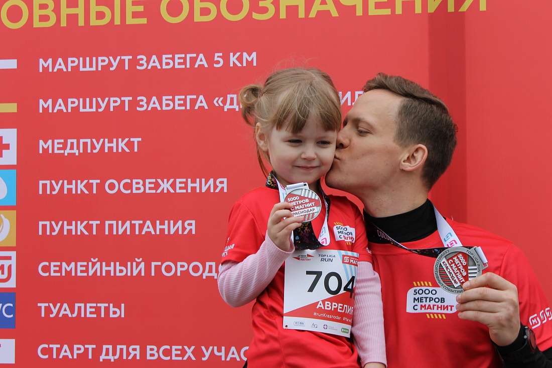 После соревнований в Краснодаре. Папа - 5 км, доча - 1,6 км.