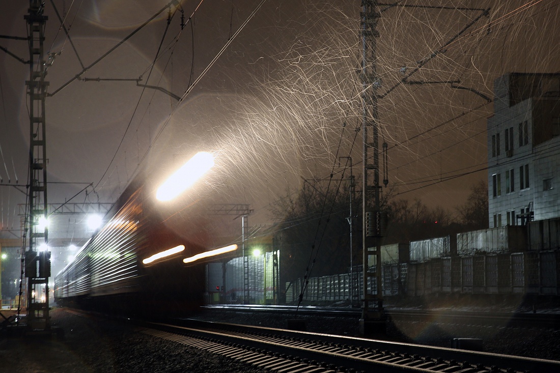 Пассажирский. Ночное фото стальной магистрали.