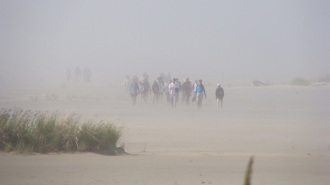 Песчаные острова Ярки на Северном Байкале одно из любимых мест отдыха не только местных жителей, но и туристов. Наша семья отдыхала на одном из островов. Светило ярко солнце, но за какой-то час все скрылось в густом тумане. Мы сидели у костра, пили чай и вдруг услышали из тумана какой-то ропот или неясную негромкую речь. А через несколько минут в тумане прорезались размытые силуэты. Ропот нарастал, силуэты обретали очертания. И вот мимо нас группами брели не выспавшиеся и голодные  туристы, которых ждал завтрак на следующем острове.