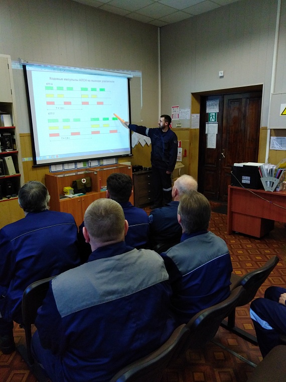Коллектив производственного участка Орел Московской дирекции по ремонту тягового подвижного состава в момент проведения технической учебы